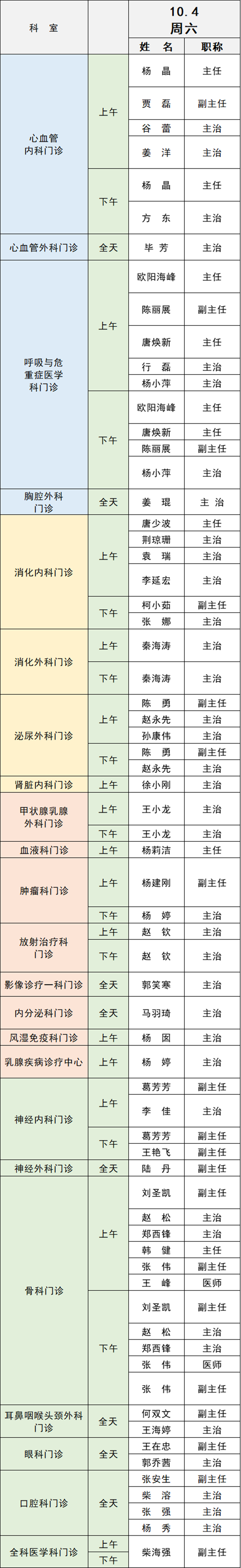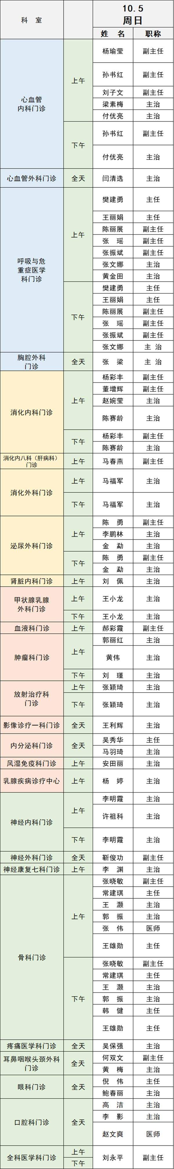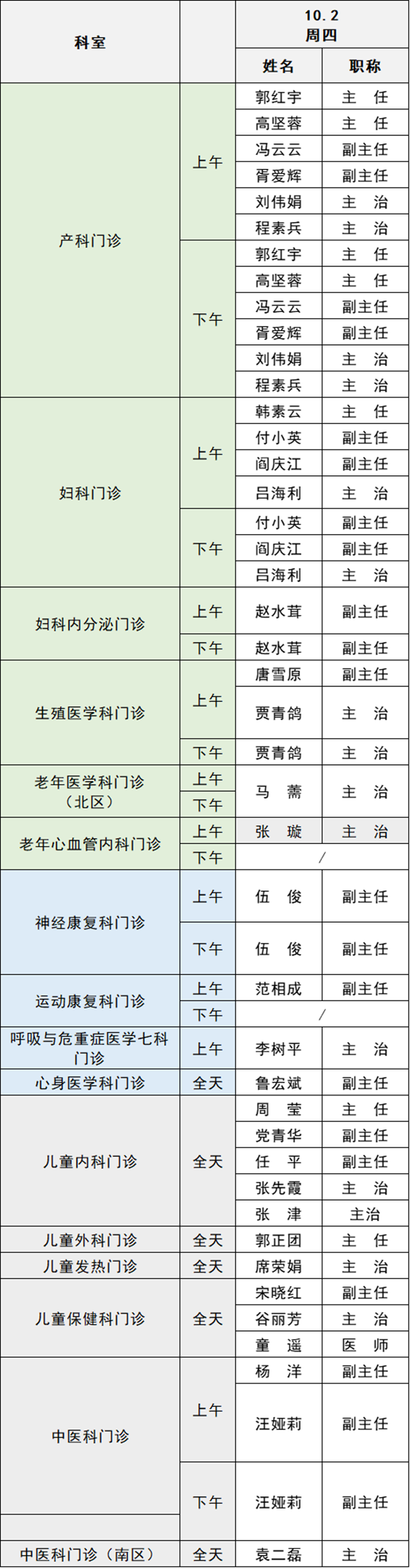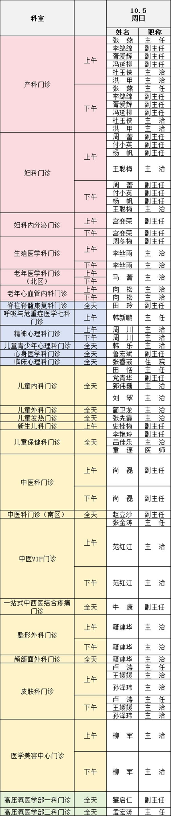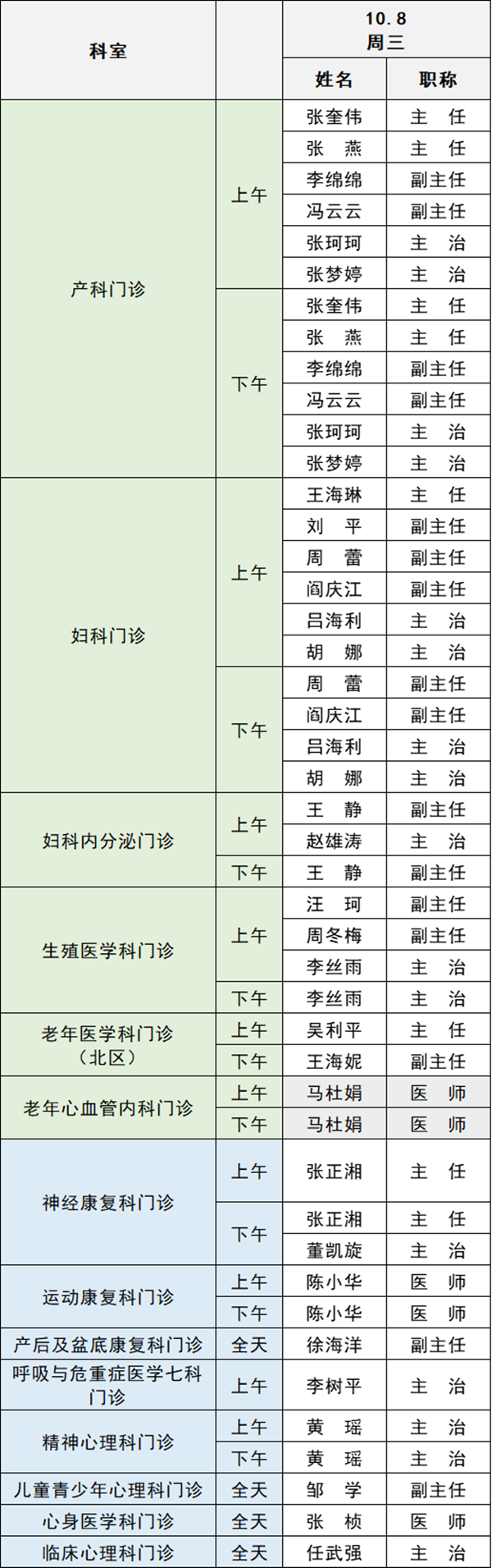 備注:實(shí)際出診情況以醫(yī)院掛號(hào)平臺(tái)實(shí)時(shí)信息為準(zhǔn)。“職稱(chēng)”欄里主任=主任醫(yī)師副主任=副主任醫(yī)師主治=主治醫(yī)師