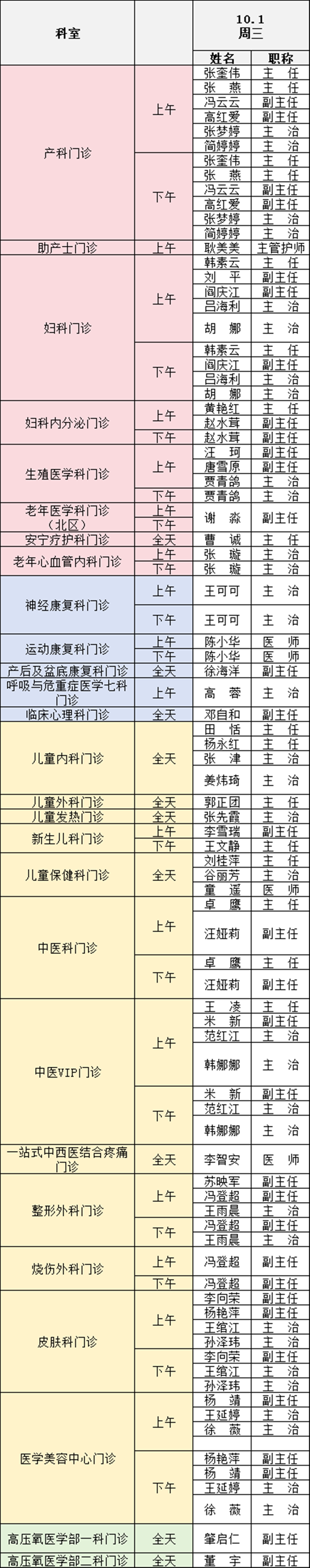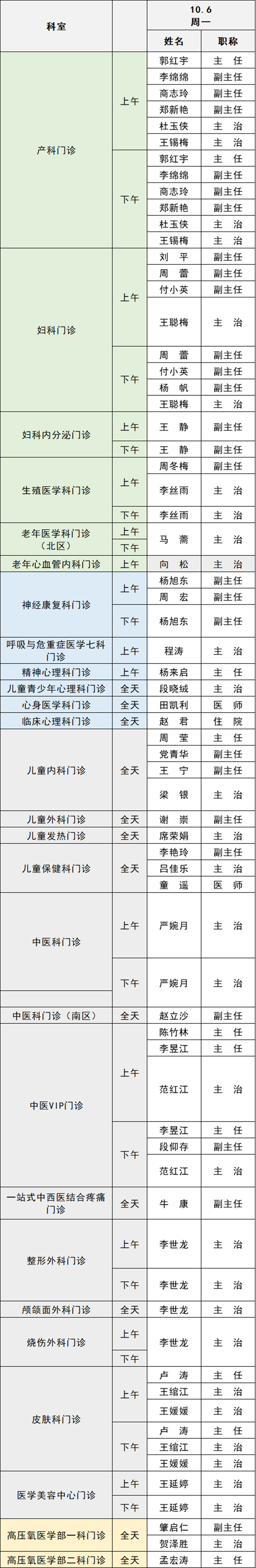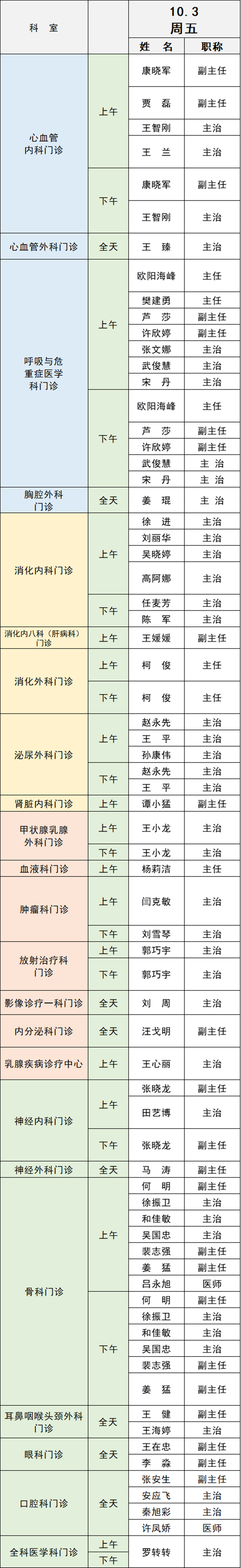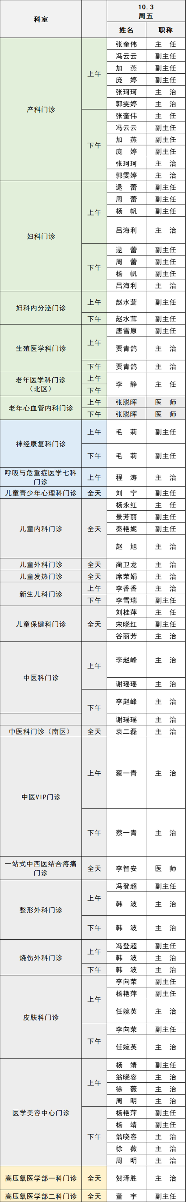 備注:實(shí)際出診情況以醫(yī)院掛號(hào)平臺(tái)實(shí)時(shí)信息為準(zhǔn)。“職稱(chēng)”欄里主任=主任醫(yī)師副主任=副主任醫(yī)師主治=主治醫(yī)師