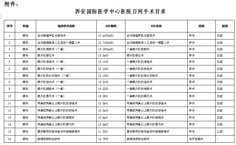 為進一步加強本院日間診療管理,規(guī)范日間診療服務(wù)行為,保障日間醫(yī)療質(zhì)量與安全,按照《醫(yī)療機構(gòu)日間醫(yī)療質(zhì)量管理暫行規(guī)定》、《手術(shù)質(zhì)量安全提升行動方案(2023—2025年)》、《提升醫(yī)療質(zhì)量安全行動計劃(2023-2025年)》等各類文件要求,現(xiàn)對我院日間手術(shù)目錄更新,具體公示如下: